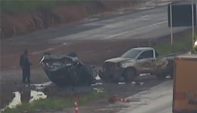 De acordo com as informações iniciais, chovia no momento do acidente, o que pode ter contribuído para a perda de aderência na pista. O Honda Civic teria rodado, capotado e, desgovernado, acabou atingindo a Hilux que estava estacionada no pátio de um posto de combustíveis às margens da rodovia.