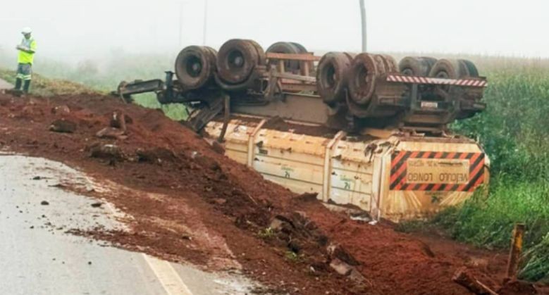 De acordo com informações da concessionária, o acidente envolveu o tombamento de um dos semirreboques às margens da pista. Apesar da gravidade do incidente, o motorista não sofreu ferimentos e assinou o termo de recusa de encaminhamento médico, saindo ileso do local.