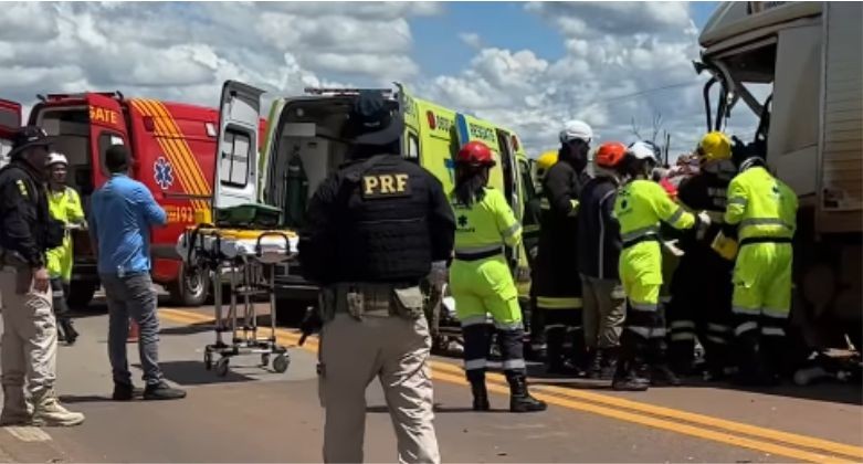 Uma das vítimas ficou presa às ferragens, sendo necessário o trabalho de desencarceramento por parte dos bombeiros. A operação de resgate contou com apoio de viaturas especializadas, incluindo caminhão auto-bomba-tanque, além das unidades de resgate das equipes envolvidas.
