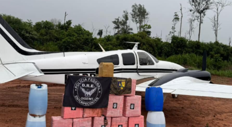 Uma ação coordenada entre a Polícia Federal, o Gefron, o Ciopaer e a Polícia Militar resultou, na manhã desta terça-feira (3), na apreensão de aproximadamente 500 quilos de cocaína em Marcelândia. A droga estava em um avião de pequeno porte que já se encontrava com os motores ligados, pronto para decolar de uma pista clandestina, quando foi surpreendido pelas equipes.