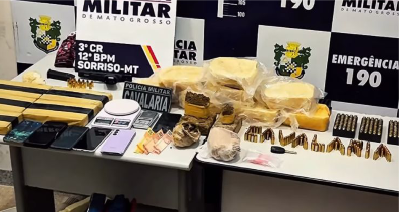 Uma ocorrência inicialmente registrada como possível caso de violência doméstica terminou com a apreensão de grande quantidade de drogas, arma de fogo e munições na noite deste domingo, no bairro Jardim dos Ipês, em Sorriso. A ação foi realizada por equipes da Cavalaria da Polícia Militar durante a Operação Lanceiro, que reforça o policiamento do 12º Batalhão no município.