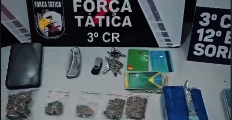 Na ação inicial, foram apreendidos entorpecentes, dinheiro em espécie e materiais utilizados no tráfico, reforçando a suspeita de comercialização de drogas. Em continuidade às diligências, os policiais se deslocaram até endereços ligados ao suspeito, onde localizaram mais porções de drogas, ampliando o volume de material apreendido.
